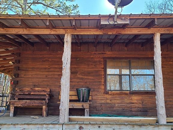 Property line is the Corps Land at Wister Lake, USA! Setting up high above Lake Wister we have a beautiful open cabin/lodge with as many views as you would like. Make the trees the focus with the lake in the background. Corps land is between the property and the lake. This piece is very secluded and almost hard to get to making it a 4x4 a necessity. Some of the trip in is on Corps Land, another reason for 4x4. 35 fenced acres partially fenced with power, a water well and recorded access. The dirt bottom shop/barn has a double carport, water and electric are there. This shop was used for flower development. The cabin is a 1 bedroom and 1 bathroom with most of the square footage open in a lodge type design. The interior is all cedar. A wrap around porch seems to add even more square footage to the house allowing the cabin to feel very roomy. The owner built a large building pad where a new home could be built. He built this pad for greenhouses. This land is a workable marijuana grow. The license to grow can stay with the property or it can void out. This is a great home place. The view of the lake is nice from here. The 35 acres is somewhat level! The school district is Le Flore, a great little country school. Down Summerfield Rd. and up Yellow Springs Rd. Call for an appointment 12 hour notice.