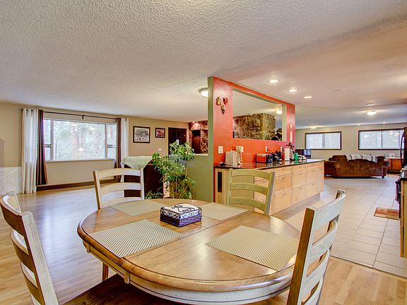 This beautiful mountain home is 'move in' ready! Surrounded by trees, and minutes away from Evergreen Lake, this home sits in a quiet neighborhood that has raised garden beds, a greenhouse, and a shed for chickens and goats. The master bathroom was expanded & remodeled with a spacious marble counter top, large shower, a walk-in closet & a standard closet. The kitchen has been updated with extra-deep granite countertops, European-style frameless maple cabinets & drawers for lots of storage. Solid oak wood floors & tile throughout the main floor, radiant floor heat in the master suite, hall bath & living room; hot water baseboard heat in the rest of the house, wood stove in the basement can heat the entire house, cedar walk-in closet & game room in the basement, as well as 2 bedrooms, laundry, full bath & 1 non-conforming bedroom (previously considered the 6th bedroom). The garage has a large workshop space and plenty of shelving. A newly added Trex Deck has also been installed!