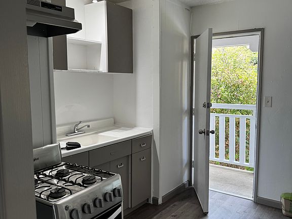Small fenced patioSmall studio apartmentGated propertyFull size kitchenHardwood floors