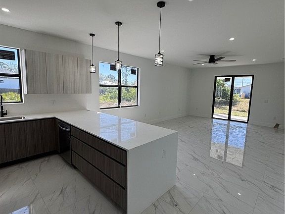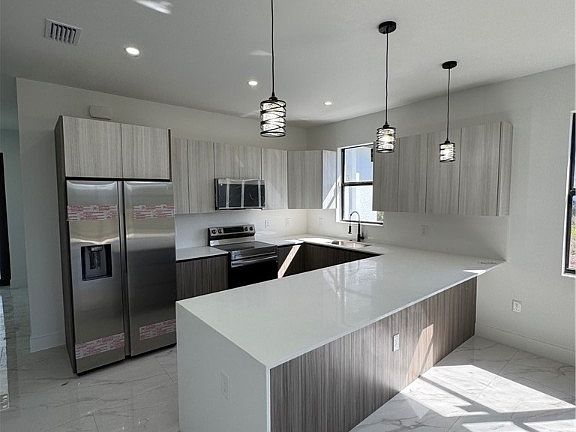 Welcome home! Make this adorable new construction home yours in 2025! This modern 3 bed 2 bath home is in a great location, close to RSW, shopping, restaurants and spring training facility for the Boston Red Sox. Home is located on a quiet street surrounded by many new homes. This modern style home has specialty lighting with tile flooring throughout and gorgeous tile work in bathrooms. Kitchen has stainless steel appliances open to living area. Home is completed just need final inspections for CO. Call today to schedule a private showing!