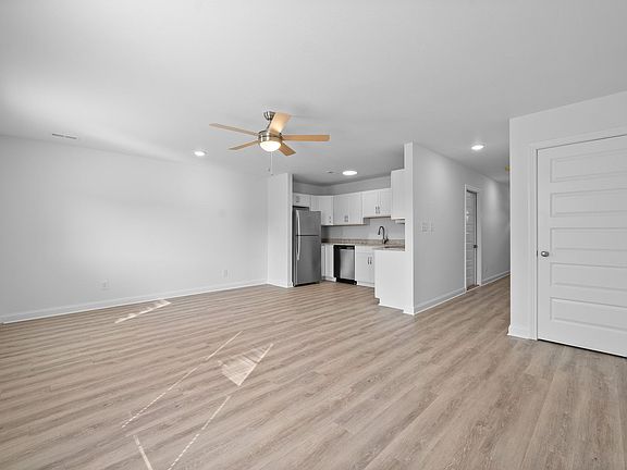 Modern stainless-steel appliancesPrivate bedroomsPlenty of cabinet spaceLaminate flooringCeiling fanCarpeted floorsGranite countertops