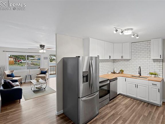 Beautifully remodeled rancher with tons of space, 5 bedrooms with two family rooms! Conveniently located just minutes from downtown. It has stunning mountain views and a spacious backyard complete with a covered concrete patio and storage shed. New paint and luxury vinyl plank flooring throughout the entire home. Completely remodeled kitchen with butcher block counters and trendy subway tiling, accentuated with modern black accents you will see throughout the home. Updated black hardware and lighting throughout. Updated bathroom complimented with stunning tile work. Newer stainless steel appliances with a range/convection oven combination. Updated major components in great condition, newer vinyl windows, newer roof, newer water heater, and updated electrical panel. This home is within walking distance, of parks, restaurants, schools, and shops. Easy access to major corridors.