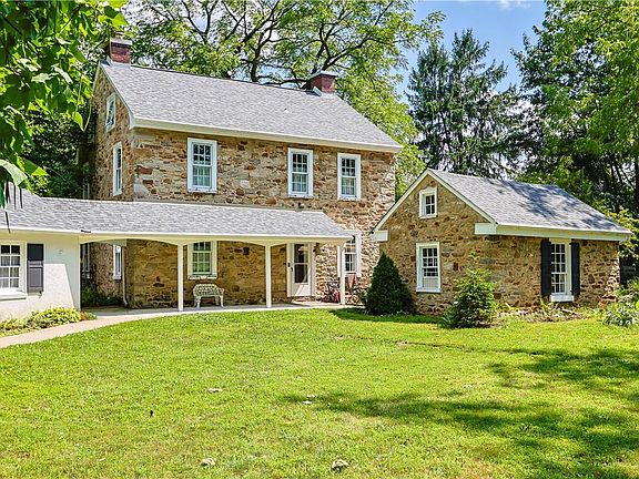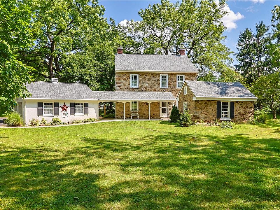 Nestled in the heart of western Salisbury Township, this meticulously preserved 1830's farmhouse in Meadowbrook offers a harmonious blend of historic charm & modern amenities. Majestic trees line this lovely lot creating a serene & picturesque setting. Upon entering, you are greeted by the warmth of pumpkin pine floors, exposed beams & newer Pella windows w/deep windowsills. The living room, complete w/cozy fireplace, provides an inviting space for relaxation. The newly renovated kitchen is a cook's dream w/lots of wood cabinets, granite counters, a tiled backsplash, refrig, microwave, deep sink & cozy eating area. The spacious formal dining room w/framed exposed original stone is perfect for hosting gatherings. The 1st floor also incl a convenient laundry room/half bath combo w/stacking washer/dryer. Upstairs are 3 bedrooms incl a well appointed master & tastefully renovated full bath. A walk-up attic offers additional storage space. Newer amenities incl GAS furnace & H/W heater, architectural roof, mini-split a/c units & water softener. The exterior features a fenced yard, 2-car garage connected to home by a covered walkway, rocking chair front porch & patio area. The original stone smokehouse has been thoughtfully renovated showcasing its exposed beams. Such a versatile space for many various uses incl a he/she shed, office, hot tub room, bar, craft area, etc. Close to Lindbergh Park, Trident Swim & Tennis Club, major highways, shopping, hospital & schools! Welcome home!