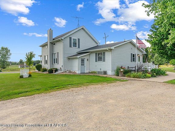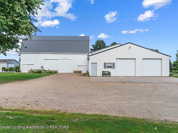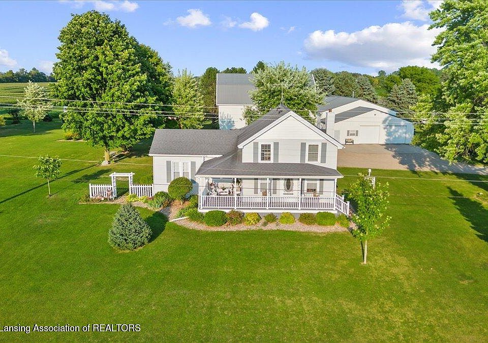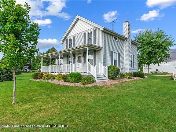 WOW! ACREAGE + 2 AMAZING HEATED OUTBUILDINGS & beautiful home so close to town with SO many updates!! Perfect mix of city and country with this 4 bedroom 2.5 bath home on close to 1 1/2 lovely acres located in a great location with a country feel, yet just outside of town in the St. Johns School District! The home has been beautifully remodeled over time and features a large foyer entry with a lot of storage and first floor primary bedroom & laundry room! The kitchen is nicely laid out with lots of cabinet space, an eat-in kitchen area and plenty of natural light. The first floor laundry room/half bath is conveniently around the corner as well as a sewing room/flex room that would make a great office or bedroom. A GORGEOUS formal dining room is just off the living room and surrounded by windows and STUNNING original wood trim with original pocket doors. Another flex room is just off the dining room that would make a fabulous office. First floor primary bedroom is convenient and has its own attached ensuite bathroom that is nicely updated! Upstairs features an additional 2 bedrooms, a full bath, and another room that could make for a walk-in closet, office, or bathroom and SO much storage! Completing this beautiful home is the newer wraparound porch with composite decking, perfect for relaxing in your rocking chair. There is also a spacious and maintenance free deck off the back of the home. The outbuildings are a dream, with the 40x80 HEATED pole barn boasting concrete floors, water, electrical, and its own meter (perfect for a business!), furnace, office area and your very own workshop! There is so much space in this outbuilding, it's perfect for RV storage, and could fit at least 7-8 cars! The hip roof barn has been lovingly restored and has even more space for all the toys and is connected to the pole barn. Updates include nearly ALL new windows & blinds, new roofs on pole barn & hip roof barns, reconstructed the inside of the hip roof barn with new beams and stairways, new floor, windows and aluminum siding, new ceiling in pole barn with insulation, new water line to barn + new water hydrant, added a newly finished part to the lower level, newer poured cement floors and sidewalls in the Michigan Basement, new entrance to basement, new block windows in basement, new toilets, new entry doors, new light tube in kitchen for more light, and SO MUCH MORE! This is definitely a rare opportunity to get a country home near the city with these types of outbuildings, call for your personal tour today!