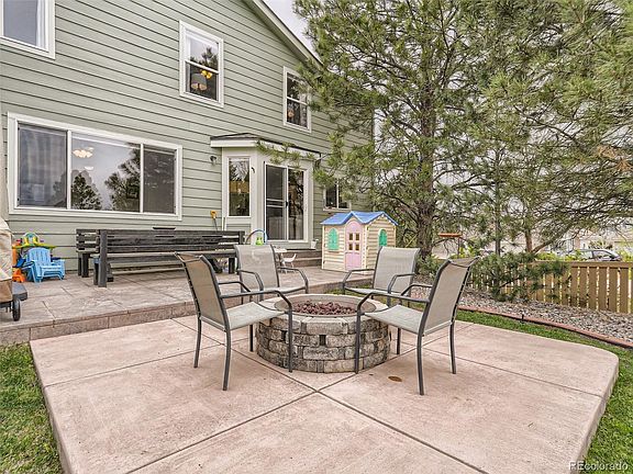 This impeccably maintained 4 bedroom, 3 bath home offers a 5th bedroom or guest suite on the finished lower level for guests or boomerang kids. With a total of 5 bedrooms and 3 bathrooms, this stunning property is move-in ready! The main floor is adorned with beautiful hardwood floors and boasts a formal living room, a cozy family room complete with a fireplace and built-ins. The spacious kitchen features slab granite counter tops, newer appliances, an island, a pantry, and ample cabinet space. Unwind in the expansive master bedroom which comes with a lovely 5-piece bath updated with custom tile. Additional features include a south facing three-car garage, a gorgeous partially xeriscaped backyard with grass and a stamped concrete patio and fire pit, and backing to serene greenbelt. Mature trees and landscaping provide beautiful shade in the summers for you to enjoy. Plum Creek boasts some of the lowest property taxes in the metro area which means you get more for less!