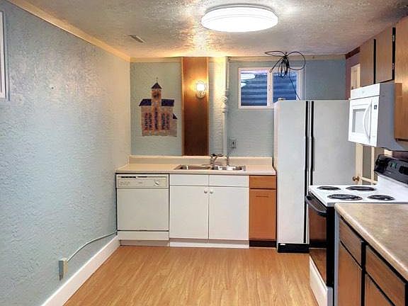 This 2 bedroom, 1 bathroom 1100 square foot basement unit features a private entrance, a large master bedroom, eat in kitchen with a walk in shelved pantry, separate dining room, spacious living room, and a newly renovated tiled bathroom. 13 new windows provide lots of light. Fenced backyard with large, mature trees and a patio. On site washer and dryer, and off street parking. Rent includes all utilities and trash!!