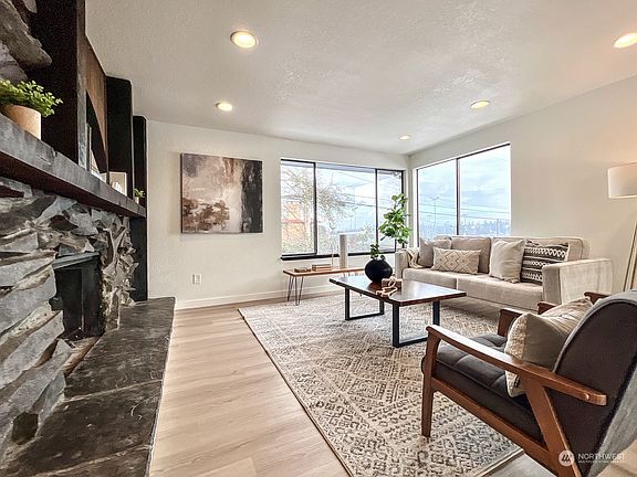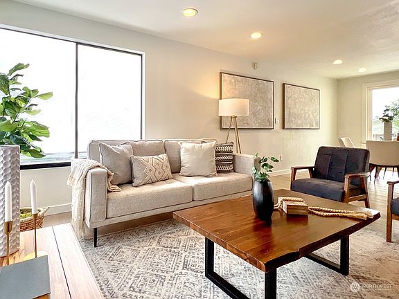 This beautifully updated home features bright, open spaces and modern finishes throughout. Enjoy brand-new flooring, fresh interior and exterior paint, new appliances, and a renovated kitchen, making it move-in ready. Spread out with two large living spaces! The spacious primary bedroom includes an ensuite bath and walk-in closet. Relax and soak up the sun on the large south-facing deck with views of Mt. Rainier. The home also offers a carport with alley access and storage. Use the additional mud/hobby/storage room at the rear entry to fit your unique needs. Ideally located just steps from Westwood Village shopping, parks, pickleball courts, and the community pool. A fantastic home in a prime location!