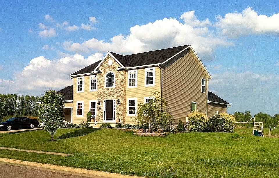 Move in Ready custom built home by 21st Century Homes. Neutral décor throughout and freshly painted in most rooms. Situated on one of the most beautiful lots in the development with breath taking views of the pond with spouting fountains on a cul de sac. As you enter this majestic home you'll greet your guest in the spacious foyer w/hardwood floors, to the left you will find a formal dining room just off the kitchen and to the right your first floor home office. As you enter the 2 story great room you're met with a wall of windows surrounding the gas fireplace that looks over the calming pond view. The great room is open to the kitchen so the cook of the house won't miss a thing, abundant maple cabinets, updated Cambria Quartz counters and tile backsplash, planning desk and eating area w/ slider leading to the patio. Off the kitchen is your first floor laundry, tucked away for private time is the sunroom with entry to the patio. 1/2 bath. The first floor master is a spacious room with vaulted ceiling, beautiful view of the pond and private entry to the patio. The master bath features a soaker tub, separate shower, water closet and walk in closet. 2nd floor you'll find 3 spacious bedrooms one is a Jr. Suite with full bath. The loft area overlooks the great room and kitchen. 2 full baths on 2nd floor, Views outside are amazing. 13 course poured concrete basement is huge, plumbed for additional bath. Call today for your private showing.