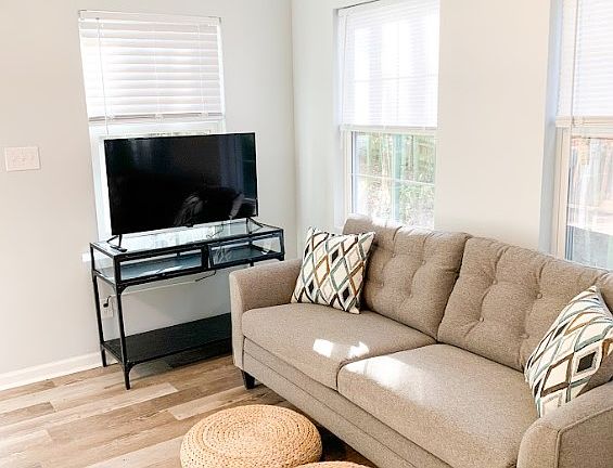 Enjoy our BRAND NEW Tiny House! Just under 400 sqft and nestled in a peaceful bamboo forest. This home has everything you could need. Fully stocked kitchen with granite countertops. Dining table. Sleeper sofa- perfect for relaxing and watching movies on our 42" Roku T.V. Built in desk and high speed wifi. Queen sized bed. Bathroom with tub and shower. Huge back deck- perfect for relaxing with a book. It has Washing machine/Dryer combo. It is optional to rent this home fully furnished. Below you will find the details of the house and furnishings. Bedroom: -Queen sized bed -Big closet -Built in desk Living room: -Queen sized sleeper sofa -42" SmartTV with Roku apps (Disney +, Netflix, Prime Video, HBO Max, etc.) Bathroom: -Tub/shower Kitchen: -High top table that seats four -Stocked for cooking -Glass stove top -Microwave -Coffee pot/Keurig -Spice Rack -Refrigerator -Washing machine/dryer combo Bathroom: -Full Tub/Shower Has Fenced Backyard This home comes fully furnished. Utilities are not included.