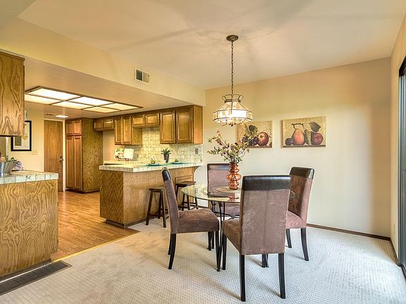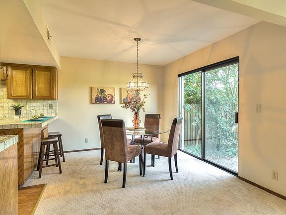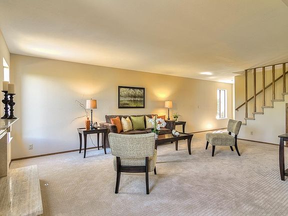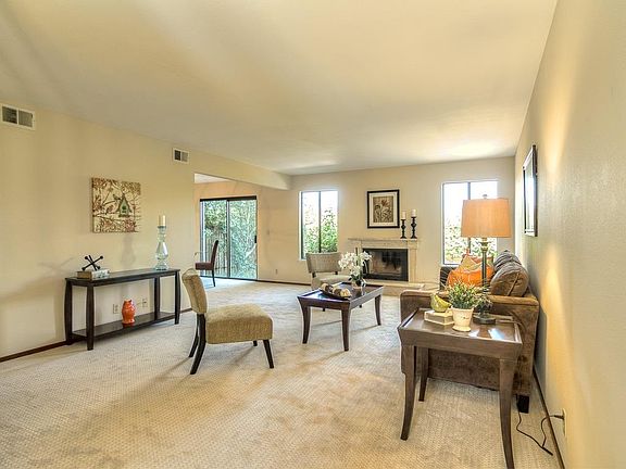 Mediterranean style townhouse walking distance to Lake Elizabeth. Features wood burning fireplace in living room, kitchen w/new dishwasher & laminate floor, and breakfast counter, vaulted ceiling in master bedrm & wall to wall closet with mirror, new interior paint & carpet, long balcony off master bedrm, attached 2-car garage, and inside laundry w/cabinets.