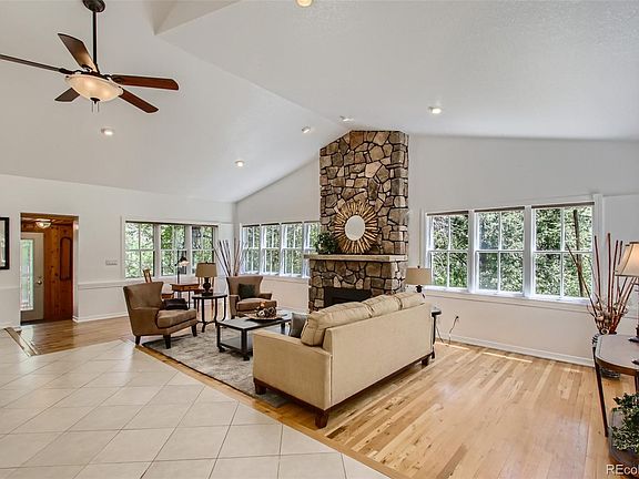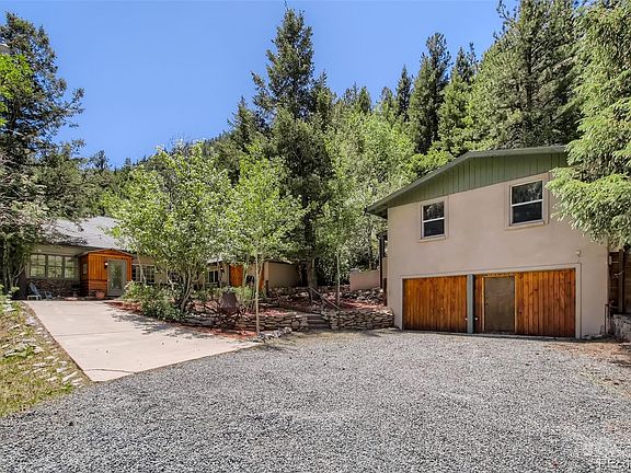 This charming property incorporates the foundation, wood flooring, windows, and fireplace of the original Coal Creek Canyon School built in 1935 as its great room. Remodeled and added on in 2007, the home includes vaulted ceilings, radiant heated tile floors, skylights, stainless steel appliances, granite counters, hardwood floors, and ceiling fans. The open design combines the kitchen, great room, and semi-formal eating space for a wonderful entertaining experience. Family and guest can enjoy the ambiance of a wood fire in the den off the kitchen, complete with a skylight and handcrafted wooden 2-piece Dutch door. This property also has an adorable studio apartment over the detached 2-car garage with bathroom, laundry, and full kitchen. It could be used as a mother-in-law apartment, rental, office space, art studio, VRBO, or whatever you can dream up. A short distance up the canyon from Highway 93, this home is close to the amenities of Arvada and Golden, with easy access up Highway 93 to Boulder. Recent improvements include a newer well pump and pressure tank, newer water heater, and a newer hot water boiler for the radiant floor heating, all in the main house. 1 year home warranty included. Click on the video for a full walk-through perspective!
