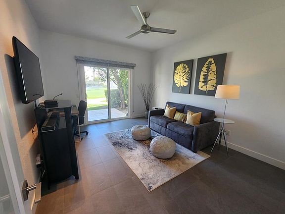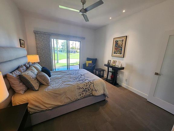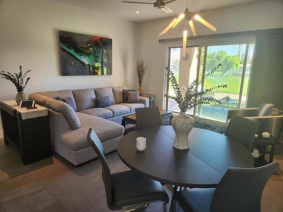 THIS IS THE ONE...you've been waiting for! Beautiful tiled patio, east facing to Vista 1 fairway, fountain to the right and steps to pool. From the gorgeous custom glass frond door entry this condo has been COMPLETELY REMODELED. NEW: flooring (12X24 stone tiles from Italy), walls in the kitchen removed, all new Thermofoil High Gloss cabinets with large island all with gray quartz countertops. Even a coffee bar! Gas range in kitchen for the chef in the family. Under counter microwave and glass range hood. Custom lighting throughout this condo. All new baths and toilets with same cabinetry and more of it! Beautiful interior doors with frosted glass, even the guest closet doors. Both closets have been redone by California Closets with storage galore. All NEW windows and sliders. New AC (3 months old). Culligan water conditioner owned (not leased). Extended laundry room with full size washer/dryer, storage and a chest freezer. This home has beautiful furnishings throughout and is immaculate! Isleta Ct is one of Desert Princes' coveted streets being a short walk to Fitness Center, Tennis Courts, Health Spa and Clubhouse with restaurant and golf pro-shop. Land Lease thru 2044, monthly ground rent $152.88.