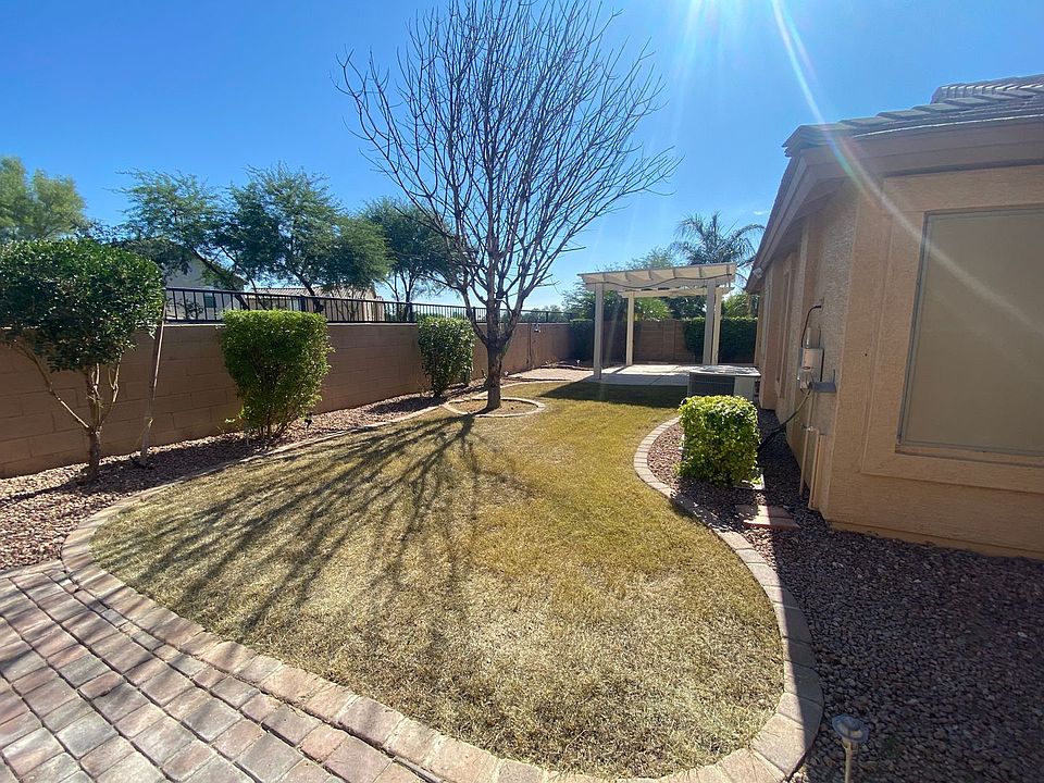 Lovely single level home with 3 beds + Den w/doors. Private location in Johnson Ranch. Loaded with upgrades including Solar panels for inexpensive electric bills! Upgraded kitchen cabinets with soft close, granite counters, induction stove, vent hood. Engineered wood floor & tile throughout. Plantation Shutters. Renovated master bath, Solar tube at hallway. Security system. Sunscreen on all windows & ceiling fans throughout. Insulated garage door & wifi enabled garage opener. Security door at front and garage service door. Garage cabinets & sink. 220 outlet at garage. Beautiful grassy backyard with extended concrete slab with Pergola, perfect for entertaining. No smoking.
