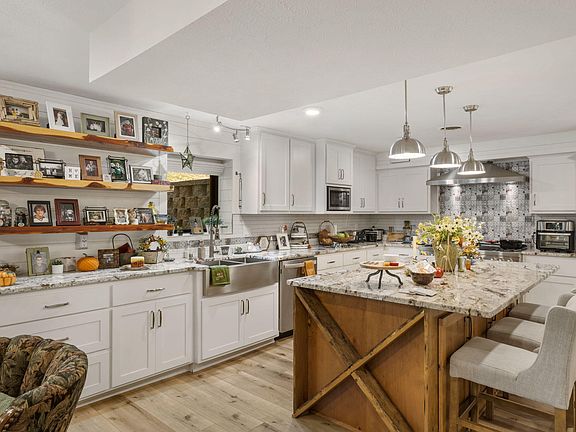 This is ONE STOP SHOPPING! Beautiful Table Rock LakeFront home, walk off your deck and to the water in your back yard. Large NEW shop! GENTLE TO THE WATER! CLOSE TO THE WATER! Lots of decks and a huge sunroom and a hottub!Welcome to your dream lakefront retreat! This newly remodeled cedar-style home, nestled on a sprawling double lakefront lot just steps from Table Rock Lake's Kings River, offers the ultimate blend of rustic charm and modern elegance. With beautiful pine and cedar accent walls, vinyl plank flooring, and a cozy wood-burning fireplace, the living space exudes warmth and comfort. The spacious kitchen is a chef's paradise, featuring floating bookcase cabinets, an expansive granite island, a premium chef's oven, propane cooktop, and a sleek stainless steel vent hood. Cleanup is a breeze with the large double farmhouse sink.The master bath is nothing short of luxurious, showcasing a custom double vanity with ample cabinetry and an exquisite walk-in tiled shower. You'll also appreciate the convenience of a large laundry room. While the interior is perfect for relaxation or entertaining, the outdoor living space is the crown jewel--just feet away from the water's edge, it's an ideal spot for serene lakefront living.For hobbyists or those seeking extra storage, the 1,440-square-foot shop is a showstopper. Built with oversized doors, a concrete driveway pad, and fully insulated with steel cross beams, it's ready to accommodate any project. The shop is equipped with electrical and lighting, making it a versatile space for work or play.And when you're ready to hit the water, your private 10x28-foot boat slip is just a few miles away, easily accessible at the end of Farm Road 1250. This is lakeside living at its finest--don't miss out on this rare opportunity! Boat slip 10 x 28 available with 6000# lift for sale for $70000