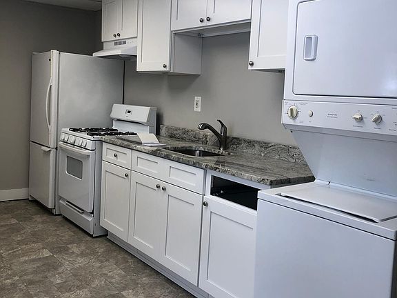 Beautiful 3 bedroom/1 bath duplex style rental in a single family home. Completely renovated with new kitchen cabinets with soft close doors, luxury granite countertops, gas range, refrigerator and new linoleum flooring. Freshly painted throughout. Eat in kitchen and living room and bonus room on first floor. Two bedrooms on second floor. Bathroom has new tub surround and designer bathroom sink cabinet with crystal knobs. Third floor has loft style room that can be used as a bedroom, office or TV room. Carpet was replaced one year ago. Stackable washer/dryer included. No A/C but tenant can use window units. Replacement windows. Fenced in back yard with small porch on front and back of rental unit. Shed in the rear. Tenant is responsible for lawn mowing and there is a parking pad in the front. Tenant also shovels snow. NO PETS/NO SMOKING $1,600.00 per month plus BGE $2,000.00 security deposit Application fee required NO PETS/NO SMOKING Tenant pays BGE - gas heat and gas range. Well water and septic. Tenant is responsible for mowing grass, snow removal and maintaining flowerbeds.