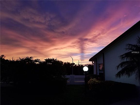 Spectacular sunset views from this villa located in the desirable Country Village which is an active 55+ community. You can choose to participate in many social functions or remain anonymous. Country Village takes care of all units with attention to details. This split floor plan two bedroom, two bathroom villa has an open floor plan and can be sold turnkey furnished or empty. It is ready for you to move in mow! Enjoy coffee or beverages while sitting in your Florida room while staring at the colorful western sky during sunsets. Also, enjoy the lake and fountain just outside your unit. Neighbors are friendly and it's a short walk to the community pool and recreation center. There is also a fitness section, shuffle board and a picnic area with a grill. Country Village is located close to shopping, beaches, restaurants, theater, highways and schools. World class beaches, the University Towne Center, St Armand's Circle, Siesta Key Beach and Anna Marie Island are all within a thirty minute drive. Many beaches are within ten minutes. Tampa and Professional sports are within an hour drive. If you like being close to the water and enjoy world class fishing, Country Village is perfect for you. Drive down the barrier island to St. Armand's Circle for dinner or ice cream. This is a must see and will not last!!!!! Call now for an appointment.