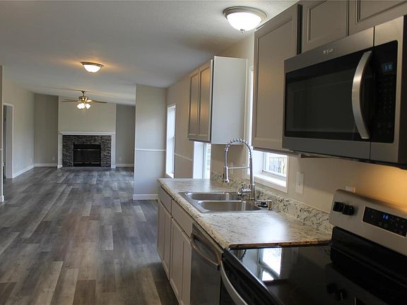 This recently remodeled three bedroom, two bathroom home sits on roughly 10 mostly wooded acres. Divided floor plan provides the master suite with a nice sense of privacy. Master suite hosts two closets, a master bath with double sink, garden style tub and separate shower. Living area has an open floor plan making entertaining a breeze. Updated kitchen flows right into dining and living space. Wood burning fireplace is perfect for warming up on cold evening or just creating a cheerful atmosphere. Unwind on the large deck that overlooks the fenced in backyard. Mature trees provide plenty of shade in both the front and back yards!