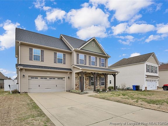 This stunning home, located in the sought-after Jack Britt school district, is move-in ready and offers 4 bedrooms + a bonus room. The open kitchen, which overlooks the breakfast nook and living room, features ample granite countertop and cabinet space, making it a must-have for any homeowner. The second floor boasts three spacious bedrooms, including the owner's suite. Each spare bedrooms is equipped with a walk-in closet and access to a Jack-n-Jill bathroom - ideal for children sharing. The spacious owner's suite boasts trey ceilings and a luxurious en-suite bathroom complete with dual vanities, a garden tub, a separate shower. Roomy walk-in closet next to the bath. On the third floor, you'll find a fourth bedroom with a full bath, along with a generously sized bonus room. The well-designed layout is complemented by an inviting screened-in porch and a private patio, perfect for outdoor entertaining. Additionally, the fenced backyard provides a safe space for children and pets alike.