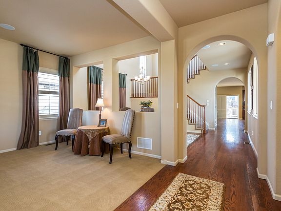Elegant 2 story home in a highly sought after Castle Rock community. You will fall in love with this property that offers amazing views of the Rockies. This 4 bedroom, 3 1/2 bathroom home with a finished basement has many upgrades. You will enjoy lavish entertaining in the formal dining room nestled under amazing vaulted ceilings. The gourmet kitchen has stainless steel appliances, granite, gas cook top, double ovens, huge kitchen island, and hardwood floors for the chefs delight! The kitchen leads to a Trex deck that over looks the back yard. The centrally located family room features a gas fireplace and wood shutters throughout the main floor. The main level has a main floor study. The open staircase leads to a master bedroom with a 5 piece bathroom, 2 additional bedrooms, a loft, an added extra media area and a balcony that leads to an extra bonus room equipped with a fireplace. The finished basement has a guest bedroom, bathroom, media room and a place for storage