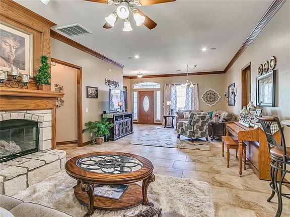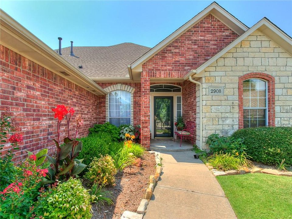BACK ON MARKET...NEW PRICE! Located on quiet cul-de-sac this beautiful home backs to a greenbelt for added privacy & sense of space. An open concept living space spills out onto a spacious covered patio with ceramic tile & ceiling fan, perfect for grilling out & entertaining guests. The large kitchen boasts a center island & breakfast bar as well as a large breakfast area with bay window. High ceilings, stone fireplace with gas logs & tons of natural light welcome you into the home. Conveniently located just off the entry through glass French doors is a comfortable study. Natural light, patio access, high ceilings & a large footprint are just a few assets of the master bedroom. Double vanity, large walk-in closet with built-in chest & jetted tub are features sure to please in this master ensuite. The guest bedrooms are separated by a jack-and-jill bathroom. Home has 2 yr old $11K HVAC system as well as storm cellar in backyard & nice size storage building. Start packing!