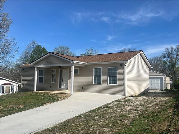 This gorgeous newly built home in the Jefferson R7 school district features an open living room with vaulted ceiling, laminate flooring and recessed lighting. Kitchen has a center island and large pantry. New appliances, refrigerator, gas stove, dishwasher and garbage disposal are all included. There are two large bedrooms with recessed lighting and ceiling fans. The master bedroom has a walk in closet and full bath. Downstairs is ready to be finished and already has finished a half bath. Out back you will find an oversized detached two car garage, a garden and a patio. Home also includes a Choice Ultimate Home Warranty $660