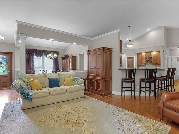 Remarkable 4bd/3bath in beautiful Stone Crest subdivision. Totally open concept! Hardwood floors adorn the great room, dining room area & hearth room with gas fireplace. Gorgeous kitchen with breakfast bar is open to it all. Large covered deck, accessed through big glass doors, offers a great atmosphere for your morning coffee or for any gathering of family & friends. The divided floor plan gives you a private master suite with jetted tub for real relaxation, double vanity and separate shower. Professionally finished, expansive lower level features a family room, fourth bedroom, full bath, game room or office, Newer HVAC in 2021 and extra storage space. Plenty of space for a workshop in the oversized, 3-car garage. RELOCATION DOCUMENTS REQUIRED.