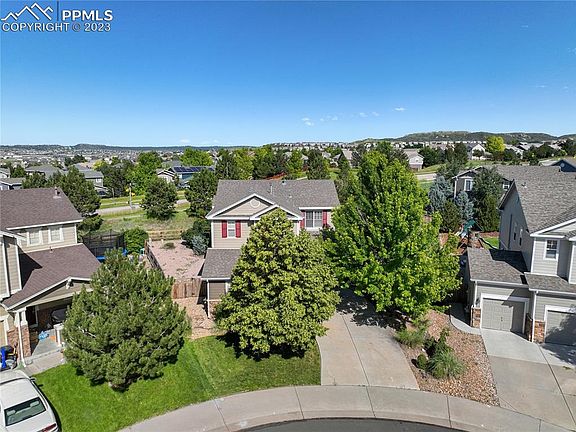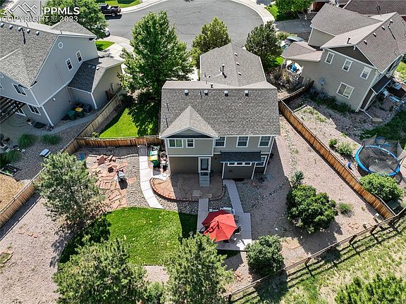 Spacious & well-maintained 2-story home located on a fenced cul-de-sac lot in the prestigious Castle Rock community, The Meadows. Established neighborhood w/ mature trees & shrubs. Covered front porch to enjoy your morning coffee. Central heat & air for year-round comfort. Attractive wood laminate floors through much of the ML. Convenient garage access & powder room off the entry. The formal dining rm features an attractive light fixture & archway into the kitchen. The kitchen provides a counter bar, a pantry, & wood cabinets w/ abundant counterspace for storage & meal preparation. SS appliances incl a dishwasher, gas range w/ double ovens, a vent hood, & French door refrigerator. Walk out to a flagstone patio that extends to a concrete patio for outdoor dining & relaxation. The great rm is located off the kitchen & has neutral carpet, a gas log fireplace, & art niche w/ transom windows that bring in tons of natural light. Main level laundry room w/ window. The UL boasts a versatile loft w/ a wall of windows & can be used as a family rm, office, or gym. There are also 3BRs & 2BAs on this level. The primary owner’s suite features neutral carpet, a walk-in closet, & adjoining bathroom that offers a dual sink vanity & soaking tub/shower w/ tile surround. 2 more BRs share a full hall bathroom w/ dual sink vanity & tiled tub/shower. There is room for expansion in the 468 sf unfinished basement. Attached 2-car garage. The fenced yard backs to green space & walking trails for your morning exercise. The backyard has low maintenance landscaping & lots of room for outdoor entertaining & fun. The Meadows community is ideal for people who enjoy an outdoor lifestyle. In addition to several parks & trails, the community offers a a club house w/ fitness center, pool, & tennis courts. You are minutes away from the Red Hawk Ridge Golf Course. This is a great home in an ideal location. Don’t miss the opportunity to make this delightful home your own!