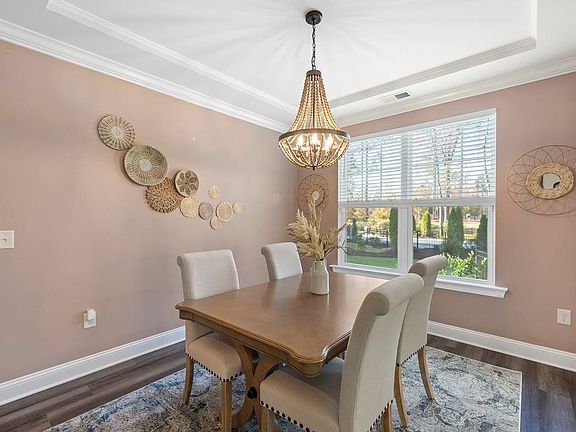 This gorgeous 5 bedroom home sits on a stunning cul de sac lot, backing to protected trees, .36acres!!! with a stone patio, built in fire pit, and a huge fenced backyard! This location in sought after Smith Farm is incredibly convenient. Easy access to 540, shops and restaurants, and parks. In Smith Farm you will find direct access to the Tobacco Trail, a dog park, community gardens, pavilion, play lawns, a beautiful clubhouse (available for event rentals!) with gas fire pits, outdoor grill, pond, and a large pool. Smith Farm is a very active and social community, with events like a chili cook off, fall festival, Diwali Festival, Easter Egg Hunt, Summer Luau, Santa Visit, book club, movie nights, regular food trucks, and much more!