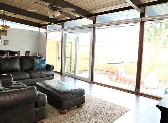 Adorable mid-century modern ranch located in the heart of Metairie. Renovated in 2012, this home features exposed tongue and groove white oak ceilings, granite counters, fresh paint, and no carpet. A newly installed sliding glass door in the living room leads to a separate courtyard patio. Bonus room leads to the back yard which features an 8' privacy fence, custom installed deck, and shed. A/C, roof, patio door, and windows all have transferable warranties.