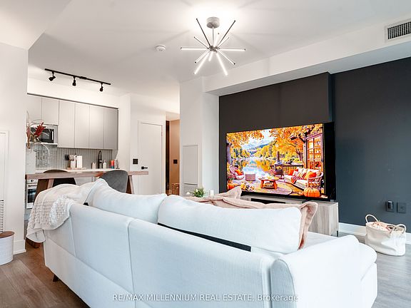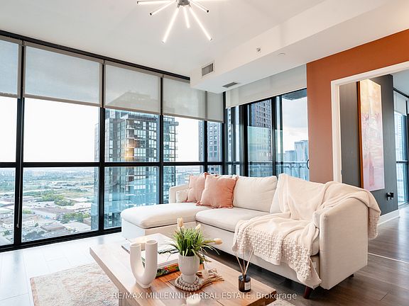 Experience Luxurious Contemporary Living In The Heart Of Vaughan! This Stunning, Sun-Filled Condo Features Floor-To-Ceiling Windows, A Bright Open-Concept Kitchen, Dining, And Living Area, And Soaring 9-ft Smooth Ceilings. Upgraded Finishes Throughout Include 8" Wide Laminate Floors, 6" Baseboards, And Extended 3'6" Soft-Close Kitchen Cabinetry. Enjoy Beautiful Window Coverings And Some Of The Best Panoramic Views In Vaughan. Conveniently Located Steps From The Subway And Just Minutes From Major Highways, Premium Shops, Dining, Universities, Grocery Stores, And Lush Parks Everything You Need At Your Doorstep!