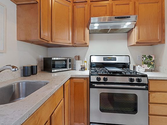 Spacious and sophisticated studio condo has its own private front deck. Efficient layout with updated kitchen with a gas range, cozy gas fireplace, remodeled bathroom, free laundry, and extra basement storage for boxes and bikes. One mile to UC campus, two blocks from College Ave bus stop (7, 51B and 851). In the heart of the Elmwood on a quiet tree-lined street. Perfectly located and steps from shops, restaurants, and transportation. Access to upper deck and rear garden for relaxation. Lease will end May 31, 2026. Seller is considering selling the condo next spring. Seller pays for trash and water. Tenant will be responsible for setting up PGE account and internet account.