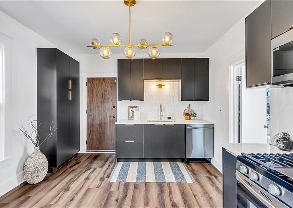 Fantastic location walking distance to some of Kansas City's best restaurants on Southwest Boulevard and great Kansas City views! A beautiful covered front porch invites you to take in the city scapes before entering the home through a proper and gorgeous entryway. The updated front door leads you into the main level which features 9' ceilings, a dedicated living room that opens to a formal dining room. Custom french doors open from dining room into a versatile office that can double as a spare room or secondary sitting area. The spacious kitchen is open and has convenient backyard access. Main level bathroom features floor to ceiling tiled shower with glass enclosure, and new laundry connections. This home has undergone meticulous updates both inside and out. Fresh interior and exterior paint, an incredible kitchen with loads of cabinetry, marble countertops and new appliances, custom-tiled bathrooms with fabulous vanities, built-ins and light fixtures, and even a new water heater. The home was updated with luxury vinyl plank flooring, lighting and elegant finishes throughout the home ensure a cohesive and elevated aesthetic. The basement opens to a private backyard which also has fabulous views. Ample street parking adds to the convenience of this area, making it easily accessible and close to everything you need. Carefully designed and updated, this home exudes style, function, and charm. You'll feel immediately at home in a unique blend of historic elegance and contemporary comfort.