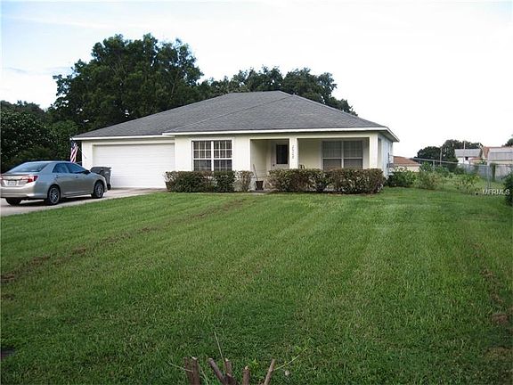 If you have ever wished for a HUGE back yard, this is the home for you!! Large .69 acre lot provides lots of possibilities: pool, garden, fruit trees, etc. etc. 3/2 split bedroom plan with open kitchen that overlooks great room. Greenhouse stays with property as well as many beautiful plants, shrubs and trees. Large walk-in closet in master bedroom. Nice front porch to enjoy a fresh breeze. Easy access to Hwy. 17-92, shopping, restaurants and churches. Dishwasher is not working and microwave turntable does not work. Cabinets in garage and workbench stay with the home. Shed is negotiable. Sold as is for convenience of seller.