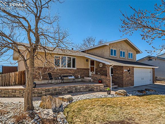 !!!! Don't miss this GEM!!!! *******FANTASTIC MOUNTAIN VIEWS******* This immaculate 5 bd/4bth/2 car garage, multi level home is waiting for you!! Move-in ready and has the extra's! Enjoy the outdoors with the front patio, shaded in the evening, and on a quiet cul-de-sac, as well as back expansive patios, and a zero maintenance, lg cement deck with storage under, already with fairy lights to compliment the city lights and views! Entertaining made so enjoyable with a natural gas grill, hook-ups for hot tub and a landscaped yard, also included is an extra large umbrella for shade. and a shed, equipped with window, and electricity to tackle those projects. Home also backs to the Homestead Trail. Step inside to your beautiful wood entryway (carries into kitchen) and vaulted living room/dining room area perfect for entertaining! Kitchen has leathered granite counters, and painted cabinets, tile backsplash, 3 step water filtration system at the sink, and walk out to the deck. Family room on lower level has a natural gas fireplace and access to the lovely patio area. Laundry/bathroom on this level as well as access to the 2 car garage. ** Basement has EXTRA LARGE PANTRY area**, storage, bathroom and 2 large bedrooms, while 3 other bedroom are upstairs including the primary bedroom with attached 3/4 bath. Bathrooms were completely updated in the last 10 years. The main bathroom on the upper level also has a solar tunnel to add light at night. Anderson windows throughout the home This home has been beautifully maintained, is clean and has quality upgrades! Interior has been newly painted, including trim, new upgraded electrical panel (120amp). Easy maintenance stucco exterior with paver pathways around house, motion sensor/security lights around the entire house, and fenced backyard. This home has centralized vacuum, A/C, Humidifier and blue light and electro static filter on furnace. Located near shopping, easy access to Academy or Powers. *** THIS PLACE IS HOME***