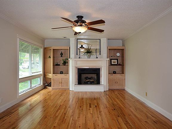 - FAMILY ROOM DESC: Ceiling Fan, Wood Floor, Crown Mold, Fireplace, Window Cov