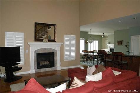 Welcome Home! This beautifully maintained FAMILY home is situated on a neighborhood LAKE. RARELY do you find 2 SPLIT bedrooms on the first floor, perfect for mother-in-law/younger child & 3 bedrooms upstairs along with an abundance of space from the professionally FINISHED WALKOUT BASEMENT that includes partial kitchen with cabinets, full bath, (exercise room/craftroom/playroom), HUGE family room, storage pantry, Concrete STORM SHELTER. HARDWOOD FLOORS in kitchen, hall, foyer, & dining room. OPEN first floor includes HEARTH ROOM with tile floors & BUILT-IN bookcases surrounding gas fireplace with soaring ceilings. An inviting kitchen open to the great room with FIREPLACE, breakfast bar, fabulous cherry cabinets with corian tops & PANTRY. Beautiful iron & wood staircase is wide for easy moving. DECK has SUNROOM for those colder evenings where you want to enjoy coffee while viewing the lake. As you can see there is alot for the MONEY! Won't last call today! Sq ft & rm sz approx\n\nInformation Deemed Reliable But Not Guaranteed. Information provided by the Southern Indiana REALTORS® Association, Inc. © 2010 SIRA Multiple Listing Service. All rights reserved. Brokered And Advertised By: Schuler Bauer Real Estate Services ERA Powered (NA) Listing Agent: Sheila Bliss