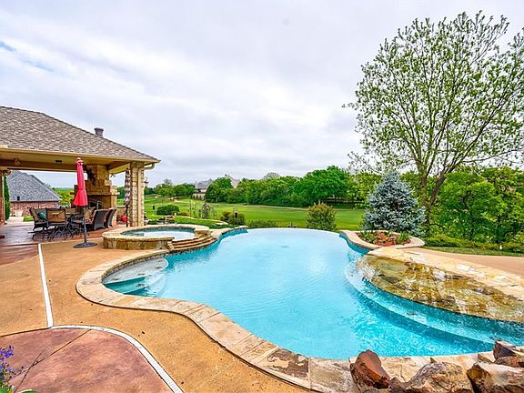 STUNNING! The Quality of this home & View of Golf Course will take your breath away. It has everything you would want including Infinity Edge Pool, fireplace and outdoor kitchen to enjoy the outdoors. A master-chef's kitchen includes SS Appliances, Jenn Air Pro Style Fridge, 2 convection ovens, warming draw, dishwasher, microwave, 6-burner commercial stove top, ice maker, wine cooler, 2 pantries & huge center island. All overlooking pool & living space. The outdoor kitchen features Jenn Air components, gas grill, fireplace, large covered patio, & landscaped terraces. The family room has floor-to-ceiling windows, built-ins, beautiful rock fireplace, & surround sound. This home screams fabulous office which includes crown molding, 3 built-in desk spaces, beautiful cabinetry & safe rm. Master Bed has tray ceilings w/access to outdoor patio. Master Bath has stone baseboards & window sills, over-sized jetted tub, dual shower heads. Oak Floors throughout downstairs & 8' solid-core doors.