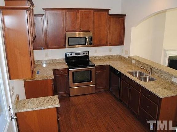 3 bd/2.5 bath three-story 1608 sqft "Energy Star" efficient townhome built in 2010. Located close to I-40 Gorman Street exit, easy access to major highways & less than 3 miles to NC State. Townhome in cul-de-sac with 10 x 10 patio backing to common area with a pergola, trees, greenway trails and scenic private pond. Two assigned Parking spots right in front of the townhome. 1st floor: kitchen with granite counter tops, pantry, 42" cabinets, refrigerator, over the stove microwave, flat-top stove, oven, dishwasher, garbage disposal. All stainless steel appliances. Open floor 14 x 13 living and 11 x 7 dining rooms, hardwood floors, electric fireplace, half-bath, and ceiling fan. 2nd floor is a large 16 x 14 carpeted master bedroom with three windows, walk-in closet, and ceiling fan. Large tiled bathroom with two windows, garden tub and shower, and double sink with granite counter top. Washer & dryer on 2nd floor. 3rd floor has 2 carpeted 14 x 10 bedrooms with large closets, ceiling fans, and two windows each. Shared tiled bathroom with window, tub, and sink with granite counter top. Owner pays for grounds maintenance. Tenant pays utilities (electric, city water/sewer, internet/cable). No Smoking. Pets negotiable w/fee. $75 per adult tenant application fee. Available 8/1/2025 1 year lease. Tenant pays electric, water & sewer, and internet/cable. Owner pays for landscaping and trash.