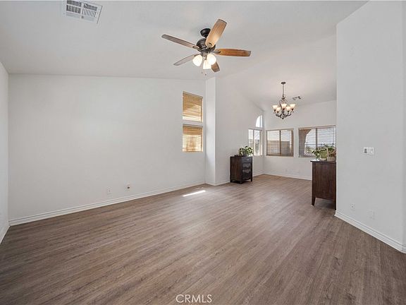 Welcome to your home in the heart of Rosamond! This beautifully appointed 3-bedroom, 2-bath, 1,600+ sq. ft. single-family residence is nestled in a quiet & peaceful neighborhood with breathtaking Antelope Valley views!! No backyard neighbors!! Bathed in natural light, this home offers a perfect blend of comfort and charm. Step inside to discover a thoughtfully designed interior featuring newer vinyl plank flooring that flows seamlessly through the main living areas, complemented by brand-new carpeting in two of the bedrooms. The open-concept formal living and dining rooms provide an elegant setting for gatherings, while the kitchen, complete with ample cabinetry and modern appliances, connects effortlessly to a cozy family room with fireplace. This inviting space opens directly to the backyard, a true serene retreat. The Primary Bedroom is large and has its own backyard access! The landscaped backyard is an entertainer's delight, boasting an oversized covered patio for year-round enjoyment, a dedicated dog run for your furry friends, and mature trees and shrubs that create a private, tranquil oasis. Savor stunning valley views and even vibrant fireworks displays from your own backyard, perfect for relaxing evenings or lively gatherings with loved ones. Additional features include low-maintenance zero-scaping in the front yard for effortless curb appeal, a tile roof, and a 2-car garage for convenience and storage. With its prime location, modern upgrades, and unparalleled outdoor living, this Rosamond gem is a rare find. Close to shopping, restaurants, transportation and more! Priced to sell fast!