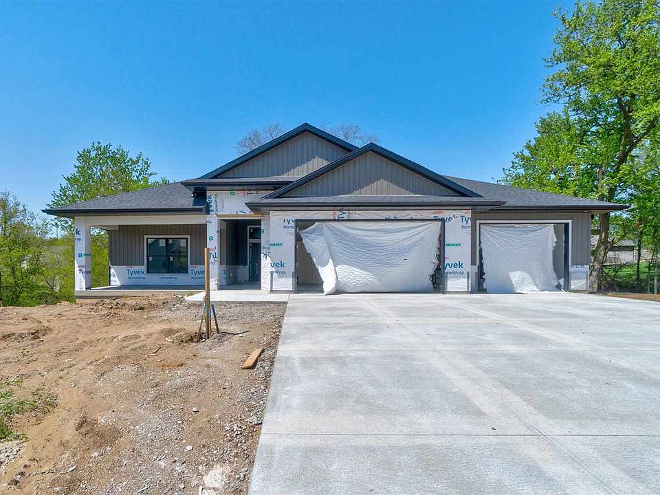 This elegant new construction walk-out ranch home offering upgraded finishes and features is situated on a private wooded cul-de-sac lot and conveniently located in desirable North Coralville close to the Coralville Youth Sports Complex, St Thomas More and other area amenities. The bright and open floor plan seamlessly connects the kitchen, dining and living areas, creating a very large gathering space to entertain with access to the sun room. Meticulous attention to detail is presented in the kitchen with quartz countertops, custom backsplash, paint and natural wood finished custom Dura Supreme cabinetry, professional series appliances with 36" gas cooktop and pot filler. Full butler's pantry behind kitchen with second wall oven, dishwasher, refrigerator and sink with abundant storage in a sophisticated space. Adjacent to the dining area is a buffet with beverage cooler and upper cabinets with glass doors. French doors open to the four-seasons room off dining area with access to the grilling deck. Foyer and main living area feature 13' and 11' lighted trey ceilings and floor to ceiling custom stone surround fireplace with lighted mantle, upper trim and cabinets flaking fireplace with shelving above. Primary bedroom suite has a 10' lighted trey ceiling, well appointed handicap accessible ensuite with double vanity sinks with lig
