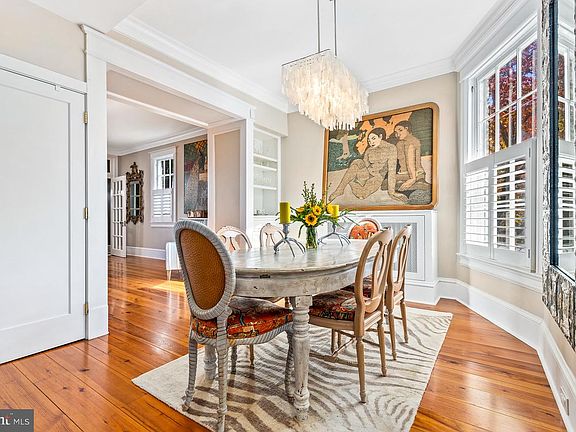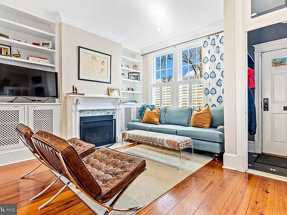 Situated in Georgetown's desirable East Village, this 3-BR Federal home has been beautifully renovated and features gorgeous hardwood floors, expansive windows, high ceilings and custom built-ins throughout. The main level living room has a gas fireplace, and opens into the spacious dining room before leading to the chef's kitchen. The kitchen features a 6-burner gas stove, stainless steel appliances, eat-in space and access to a private flagstone patio. There is also a main level half bath and coat closet. The upper level has a generous primary bedroom with three large closets and great natural light, a large hall full bath with separate tub and shower, as well as two additional bedrooms. The finished lower level has great space, additional storage and washer/dryer.