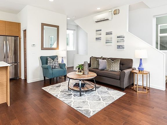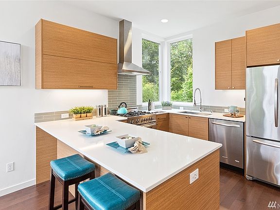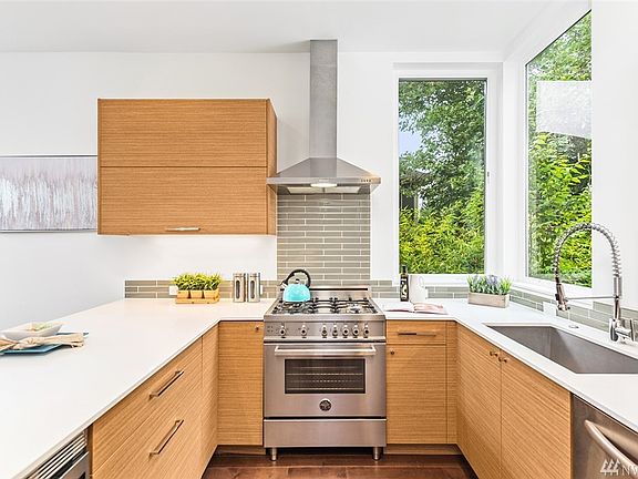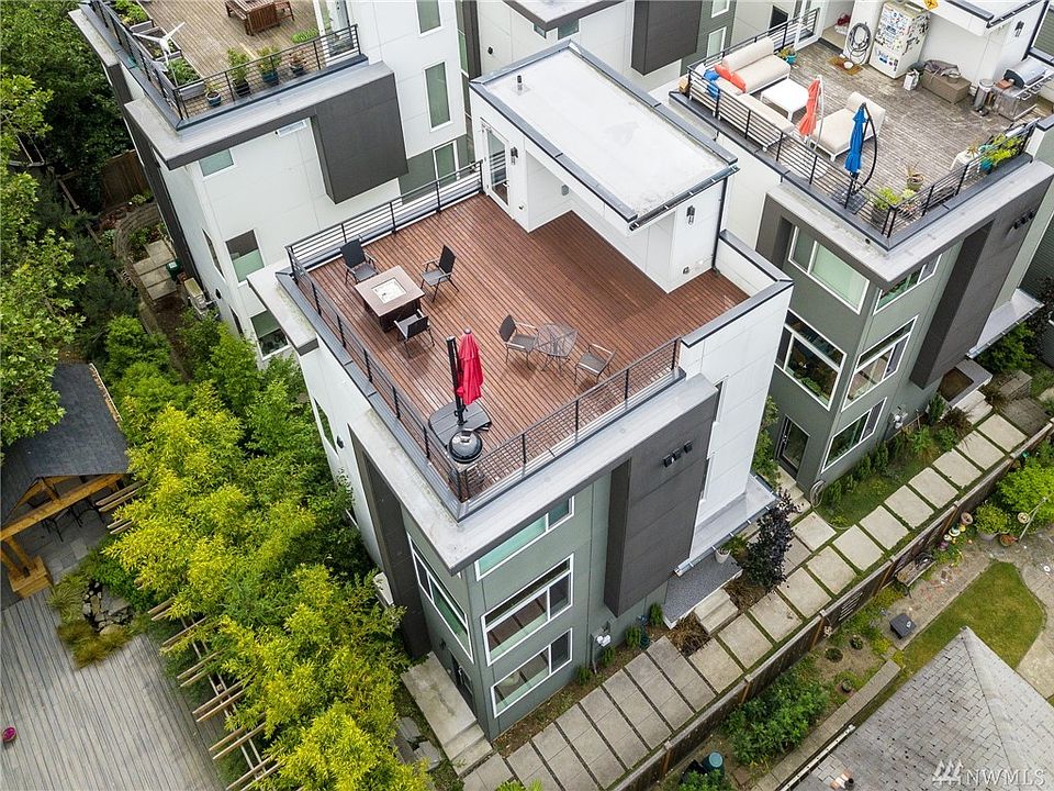 Enjoy captivating city and Olympic views from your stunning rooftop deck, & almost every window in the home. This modern home has a rare 2 car garage, is close to Lake WA/downtown/highways, and has a gorgeous en-suite master bedroom with WIC. Open concept living area, high efficiency mini-splits (heat/AC), soft-close cabinets, hardwoods, quartz countertops, SS appliances, gas Bertazzoni range, deck plumbed for BBQ & hot tub. Improvements incl. blackout/top down blinds + built in shelves.