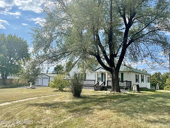 Don't miss out on your opportunity to enjoy some privacy just outside city limits! This property sitting on large lot has tons to offer with spacious family/living room, formal dining room, 2 bedrooms on the main, upgraded cheery kitchen, large sunroom with main level laundry. Upper level has 2 additional bedrooms. Updated bath with shower. Storage in walkout basement. Wraparound deck. Electric/window AC in large detached garage. Carport, wrap-around deck and partial privacy fence. 50 year roof installed by Martin Metal. Property being sold AS IS.