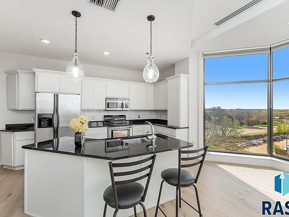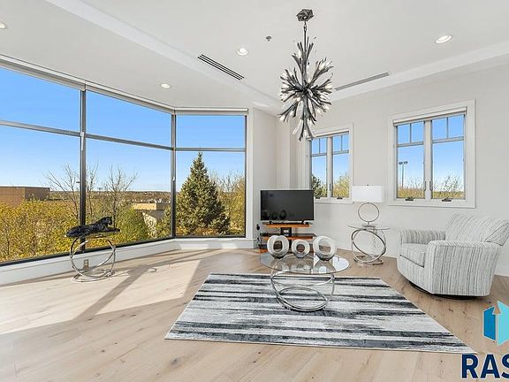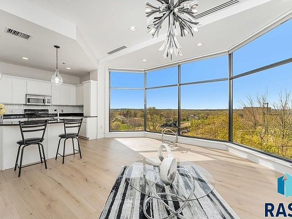 Priceles$$ panoramic view of twinkling stars & treetops above the Sioux Falls skyline. Sunkissed light streams through the 10' x 18' floor to ceiling windows. Each day is a new painting as you look out the wall of windows in this 3rd floor, 1 bedroom property. Extravagant 2024 updates: NEW engineered wood flooring, lights, paint & more. NEW ornate chandelier adorns the soaring 11 foot ceilings. NEW backspash enhances black Granite Countertops & Stainless Appliances. Star gazing and bird watching might be your new pleasure with stunning southwest views. HOA covers lawn care, snow removal, exterior building & ground maintenance, Exercise Facility, Community Room, & Guest Suite for your pleasure. Underground heated garage. Security system throughout. Let the night sky & stars dazzle you as you live in luxury at Vista Towers. Feel the calmness melt away your cares when you come through the door & see this one- of-a-kind view.