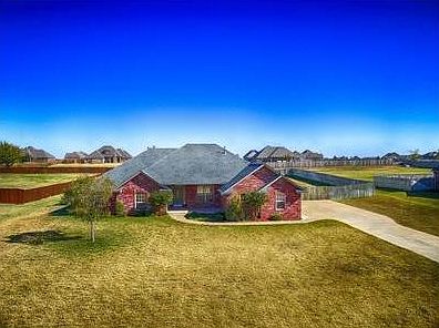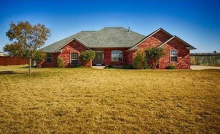 lovely home on acre lot ,Media room,classic office with built-in shelves& french doors,newer carpet and wood floors,kitchen has big island and built-in desk,stone fireplace,solid countertops,sink in utility room,master bath has double sinks-whirlpool tub and huge shower,Moore schools , close to Norman and Moore,Belmar golf & Country Club a driver shot away-