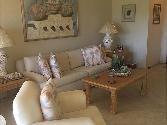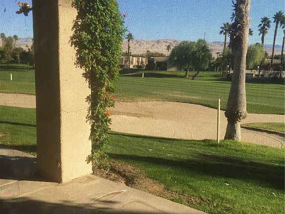 East facing condo with beautiful view of pond and golf course from the living room and master bedroom.. This condo has a designated dining area off the kitchen, with enough room for guests. Sit on your patio for morning coffee with sun, and afternoon shade as the golfers go by. Close to Spa/Fitness Center, Tennis courts and Clubhouse. Nice tile floors in living and traffic areas and carpet in bedrooms. You'll want to see this one! A perfect vacation spot in the Palm Springs area! Come visit this wonderful resort with 27 holes of golf, 33 pools and spas, Health and Fitness Center, Lighted tennis court...this place has it all. The location is great! Minutes to the PS International Airport, downtown PS, casinos, shopping, hiking and more.