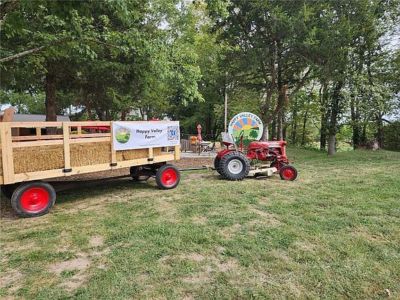 Happy Valley Farm is a thriving business with 8.5K followers on social media. The business and farm equipment are available for purchase outside of the real estate sale. Zoned RA, Residential Agricultural. Property is divided by K-10 Hwy. Private, peaceful, and serene location in highly desired Johnson County and De Soto Schools. In Spring, 2025, Panasonic Energy North American will open a 300-acre manufacturing facility in De Soto at Astra Enterprise Park, bringing thousands of jobs to the area. Don't miss our exterior video!