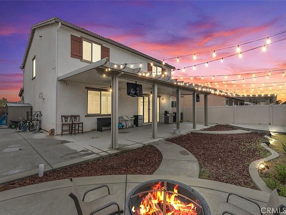 Welcome to 29081 Soraya, Lake Elsinore – Located in the Highly Sought-After Summerly Community! Step into this beautifully upgraded 4-bedroom, 3-bath home offering 2,263 sq ft of spacious living on a premium lot with no rear neighbors – giving you privacy and peace in a vibrant neighborhood. As you enter, you’re greeted by a versatile front sitting area perfect for a playroom, home office, or extra TV space. The open-concept layout flows effortlessly into the heart of the home — a light-filled family room featuring a custom built-in fireplace, seamlessly connected to the kitchen and dining area. The kitchen is a chef’s dream, showcasing granite countertops, white cabinets, stainless steel appliances, and plenty of prep space. Upgraded flooring throughout adds a touch of style and comfort. Step outside to your private backyard with a low-maintenance Alumawood patio cover, complete with multiple ceiling fans — perfect for relaxing or entertaining all year round. Additional features include leased solar for energy efficiency and smart long-term savings. This home truly has it all — space, upgrades, location, and comfort — all within the thriving Summerly community, close to parks, schools, shopping, and the Storm Stadium. Don’t miss your chance to own this exceptional home!