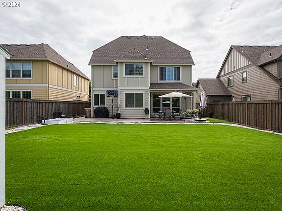 This lovely, well cared for home has an exceptional HUGE backyard that offers privacy and is fully fenced...none others on the market in Villebois have a large backyard like this. We can brag about that! 2020 New Tiger Turf grass, cost $16k and is divine. Beautiful stamped concrete patio(16x40)that is a partialy covered. Awesome for bbq-ing and entertaining. Also includes a garden/tool shed 8x10 with power. Enjoy an open floor plan filled w/natural lights, 9ft tall ceilings downstairs,8 ft upstairs. Gather together in the great room-style living room w/built-in shelves and gas fireplace. Opens up to a wonderful kitchen w/ample granite counters and island w/stools, abundant cabinets with slate stone backsplash. Walk-in Pantry! Upstairs are 4 generous bedrooms. The very private owner's suite is exceptional with spa-like bathroom featuring a deep soak tub,WI shower,Dbl sinks,huge WI closet with built-ins.Downstairs office/den could be 5th bedroom w/full bath next to it, with 2 more full bathrooms upstairs with tile floors, yes, 3 full baths! Energy efficient tankless gas water heater,95% gas furnace, central AC. Spacious Dbl car garage with storage cabinets.Create lasting memories here in Villebois, an award winning community with parks,sports courts, club house,fitness gym and swim/lap/pool(75x45 sq ft) not all homes here have access to the pool. No need to bring your mower, HOA takes care of front yard and landscape, internet is included and again…this one has the pool and gym.Piazza @Villebois located in heart of the Village Center that's connected to apprx 20 acres of open space,trails,paths & breath taking parks. Well maintained playgrounds,skate park,pet friendly amenities, community gardens,events & holiday celebrationsMove in ready !
