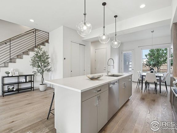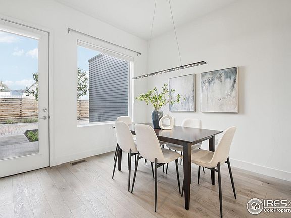 This contemporary townhome-style condo blends high-end finishes, Flatiron views, and a bright open layout-all in one of Boulder's most central locations. The main level features wide-plank engineered wood floors, an open-concept living and dining area, and a modern kitchen with quartz counters, stainless appliances, designer lighting, and a great mix of painted and wood cabinetry. Upstairs, the primary suite includes a walk-in closet and a beautifully finished en-suite bath with dual sinks and a large walk-in shower. Two more bedrooms, a full bath, and a laundry closet round out the second floor. The third level offers a bonus flex space-use it as an office, lounge, or even a fourth bedroom-with big Flatiron views and direct access to a private rooftop deck. It's the perfect spot for sunset dinners, drinks with friends, or just soaking in the mountain views. This location is tough to beat-close to Zeal, Just Be Kitchen, and Verb Coffee, with easy access to parks, bike paths, shops, restaurants, and even Google's Boulder campus. It's low-maintenance, lock-and-leave living with the best of Boulder just outside your door. Don't miss the virtual tour. This one is special.